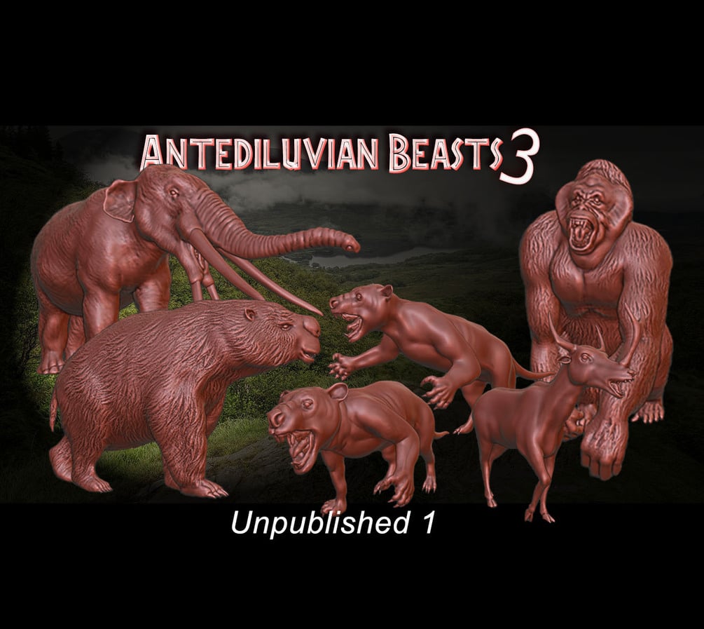 There are six Antediluvian Beasts Models with their respective bases. These miniatures I have modeled respecting current paleontological knowledge by studying fossil remains and taking into account recognized paleo-artistic recreations. I modeled these miniatures on a 32mm scale. (the height of a man's eyes). Pre Supported Models All the models are delivered Pre Supported so that you can enjoy your printed miniatures as soon as possible. You receive the pieces in "clean" STL files, in STL files with the supports, and in the Chitubox file in case you want to modify any of the supports.