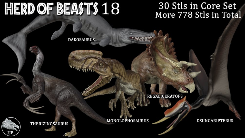 There are 30 Antediluvian Beasts Models with their respective bases. These miniatures I have modeled respecting current paleontological knowledge by studying fossil remains and taking into account recognized paleo-artistic recreations. I modeled these miniatures on a 32mm scale. (the height of a man's eyes). Pre Supported Models All the models are delivered Pre Supported so that you can enjoy your printed miniatures as soon as possible. You receive the pieces in "clean" STL files, in STL files with the supports, and in the Chitubox file in case you want to modify any of the supports, or even hollow it out.